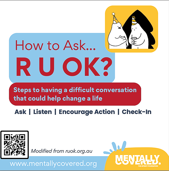 A small, easy-to-carry card designed to prompt supportive conversations, check in on others’ well-being, and connect people to help when they’re struggling.
